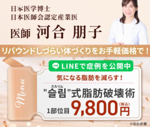 - LINE登録で脂肪冷却1部位5,000円、スルリム注射9,800円のお試し価格