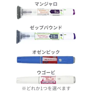 内服薬のリベルサスと、注射薬のオゼンピック(週1回)・マンジャロ(週1回)・ウゴービがあります。